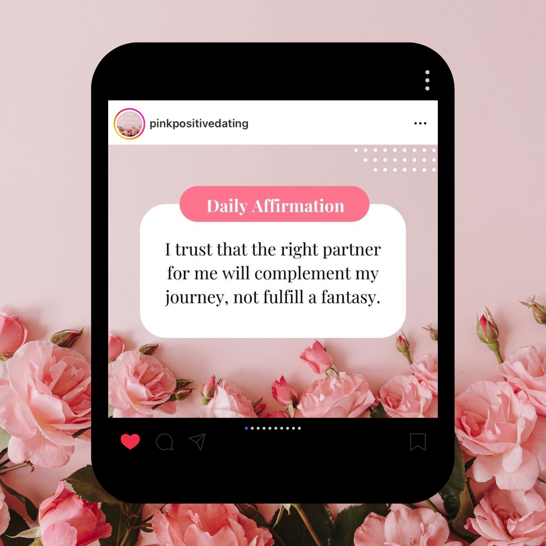 Follow@pinkpositivedatingon Instagram for daily affirmations to transform your love life. These affirmations can you help build confidence in your ability to find a suitable romantic partner, build a strong positive mindset to succeed at modern dating, and help you attract and strengthen romantic relationships.